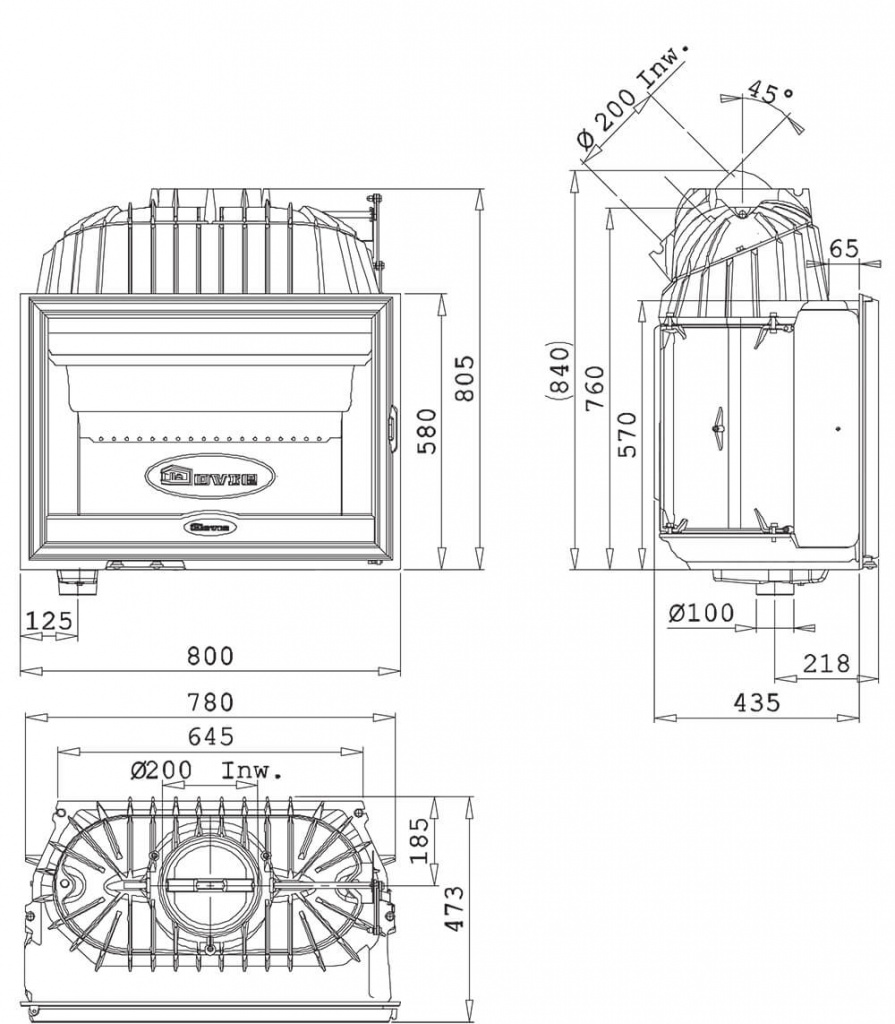 Инструкции, чертежи, документы - Камин Dovre 2180CBC/B