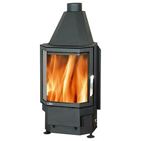 Топка Derby 6/57 имеет трехгранное призматическое окно, выполненное из огнеупорной стеклокерамики с температурным порогом в 700 градусов Цельсия, и предназначена для угловых каминных моделей.