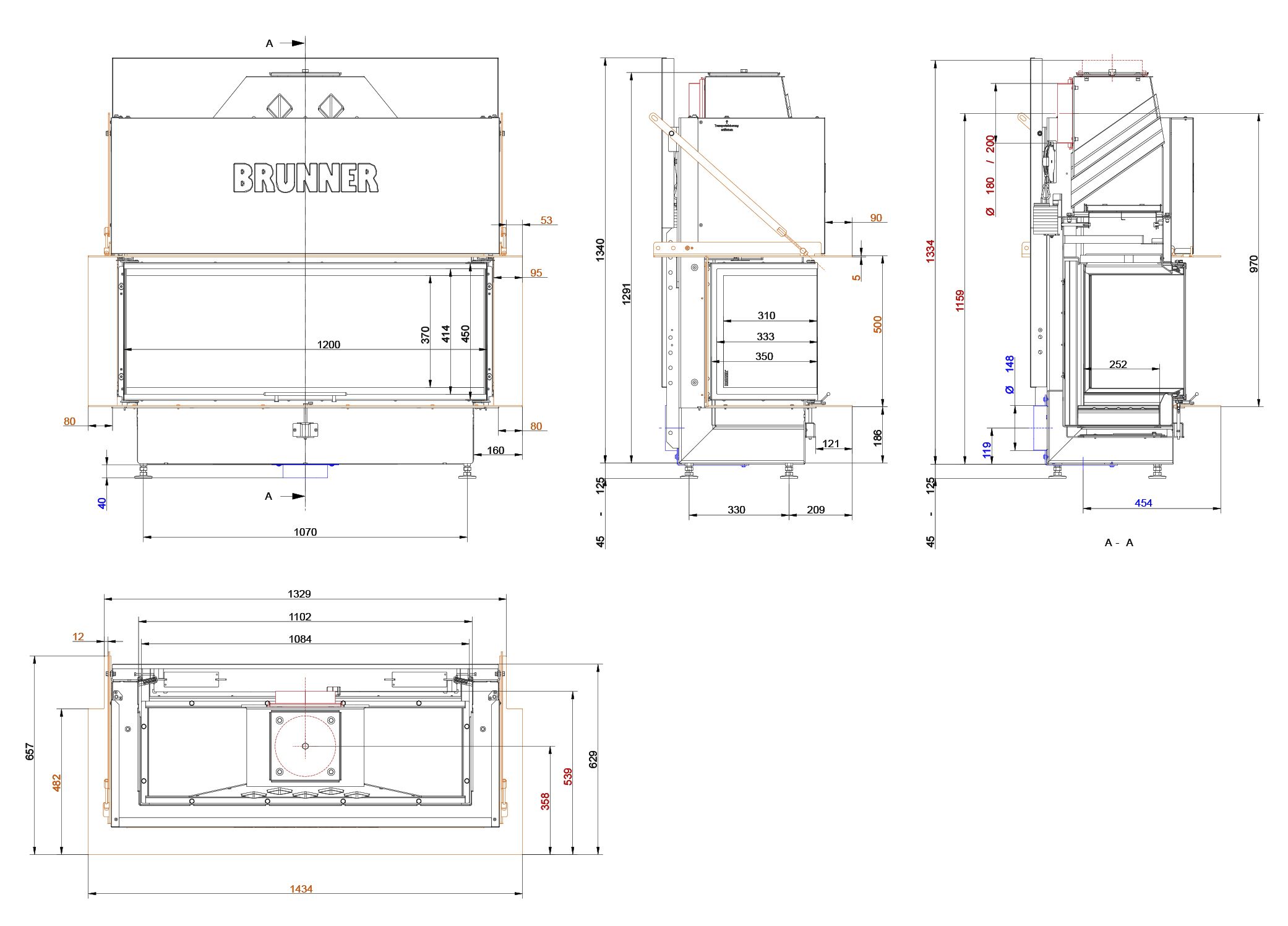 Инструкции, чертежи, документы - Каминная топка Brunner BKH Panorama 45/35/120/35 ST