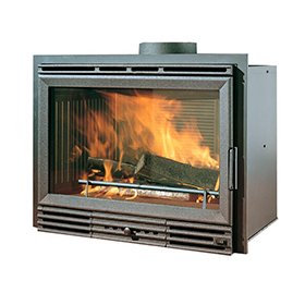 Компактная топка-инсерт с плоским стеклом широкой дверцы, автоматической шиберной задвижкой и системой натуральной конвекции. Оснащена системой двойного дожига топлива и пониженного выброса вредных веществ в окружающую среду.