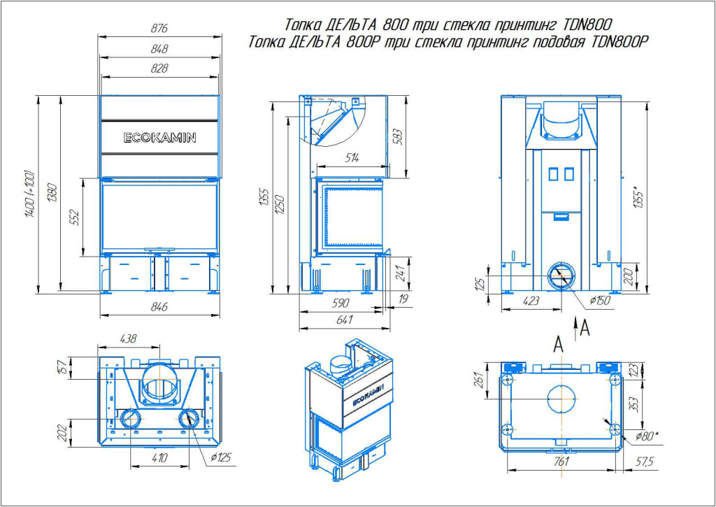 Инструкции, чертежи, документы - Каминная топка ЭкоКамин Дельта 800B три стекла черный шамот принтинг