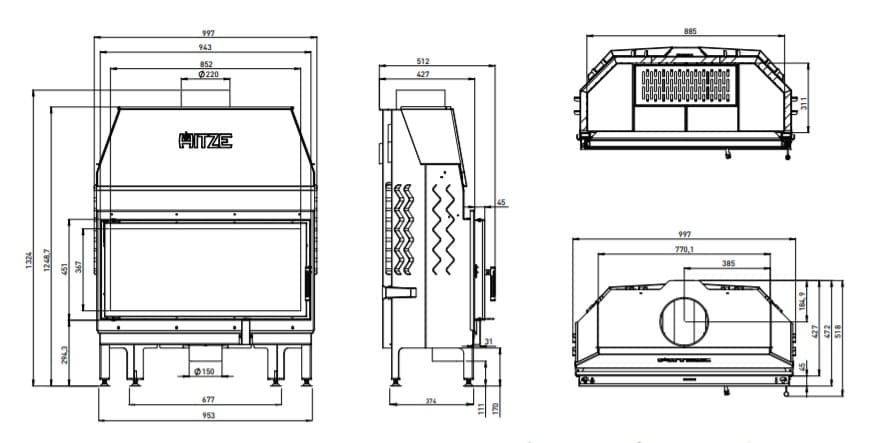Инструкции, чертежи, документы - Каминная топка Hitze Albero AL16S.H DI