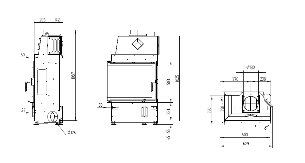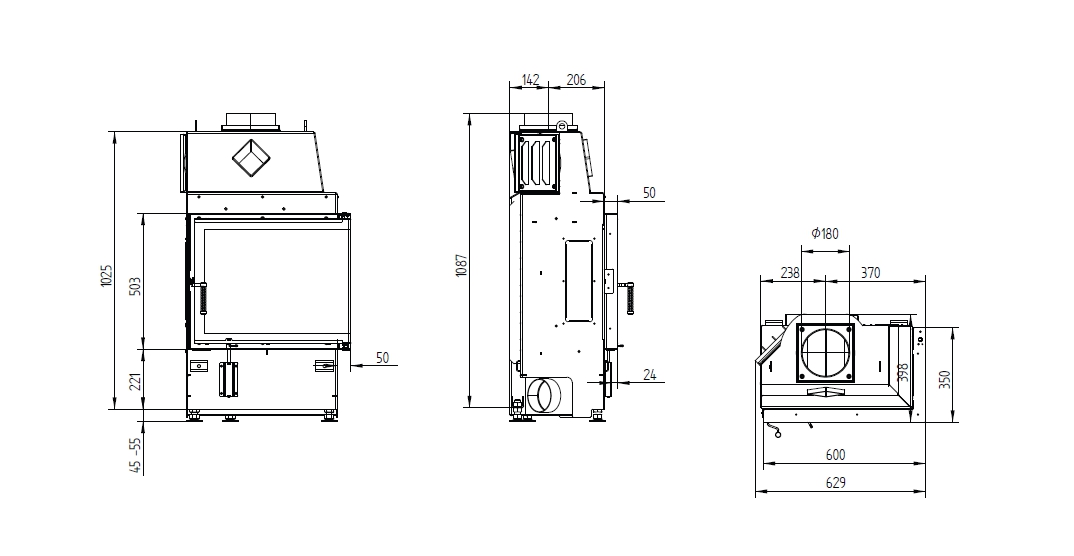 - Диаметр дымохода, мм 180