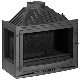 Чугунная топка, прямое стекло, оригинальный дизайн, боковое открывание дверцы.