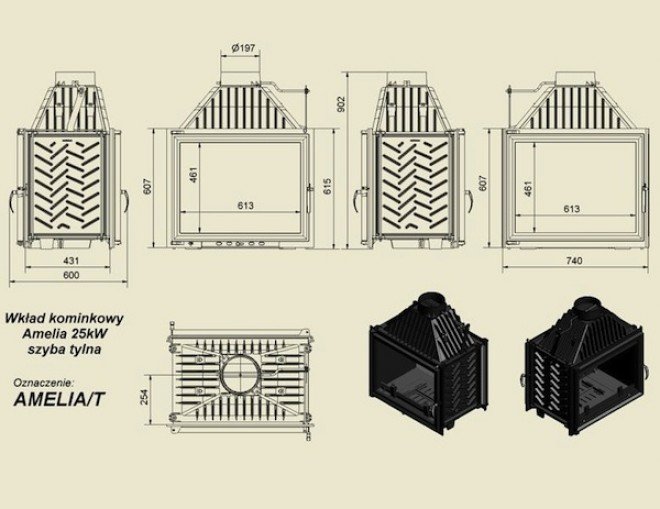 Инструкции, чертежи, документы - Каминная топка Kratki Amelia/T (тунель)