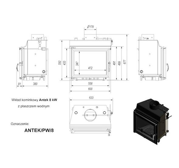 Каминная топка Kratki Antek/PW/8/GLASS (двойное стекло)
