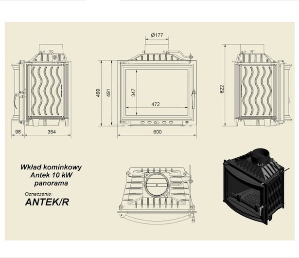 Инструкции, чертежи, документы - Каминная топка Kratki Antek/R (панорама)
