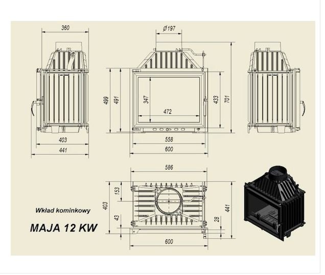 Инструкции, чертежи, документы - Каминная топка Kratki Maja/GLASS (двойное стекло)