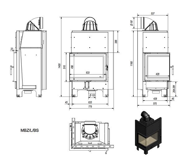 Каминная топка Kratki Pro MBZ/L/BS (светлая футеровка)