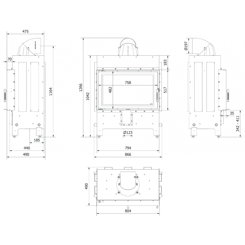 - Диаметр дымохода, мм 200