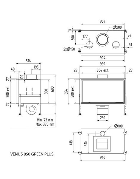 Инструкции, чертежи, документы - Каминная топка M-design Venus 850 Green Plus (Венус 850 Грин Плюс)