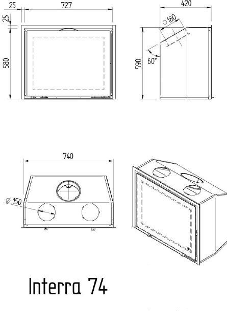 Инструкции, чертежи, документы - Каминная топка M-design Interra 74 (Интерра 74)