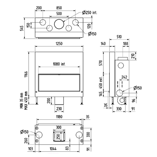 - Диаметр дымохода, мм 250