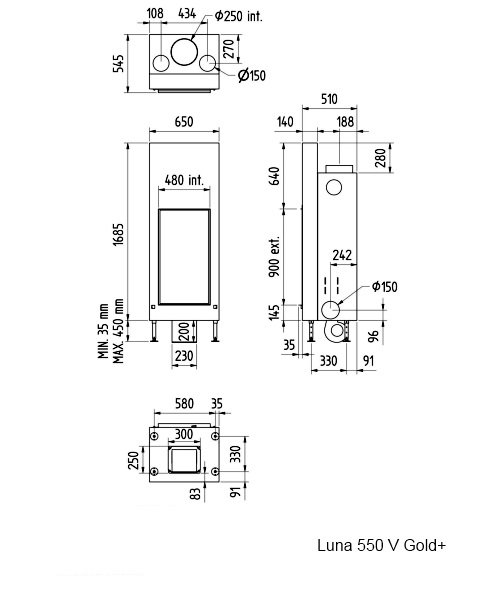 Инструкции, чертежи, документы - Каминная топка M-design Luna 550 V Gold+(Луна 550 V Голд+)