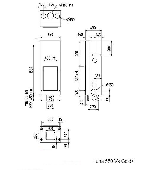 Инструкции, чертежи, документы - Каминная топка M-design Luna 550 VS Gold+