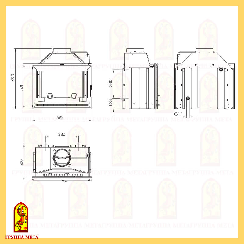 Инструкции, чертежи, документы - Каминная топка Мета Оптима 701 Аква Ш