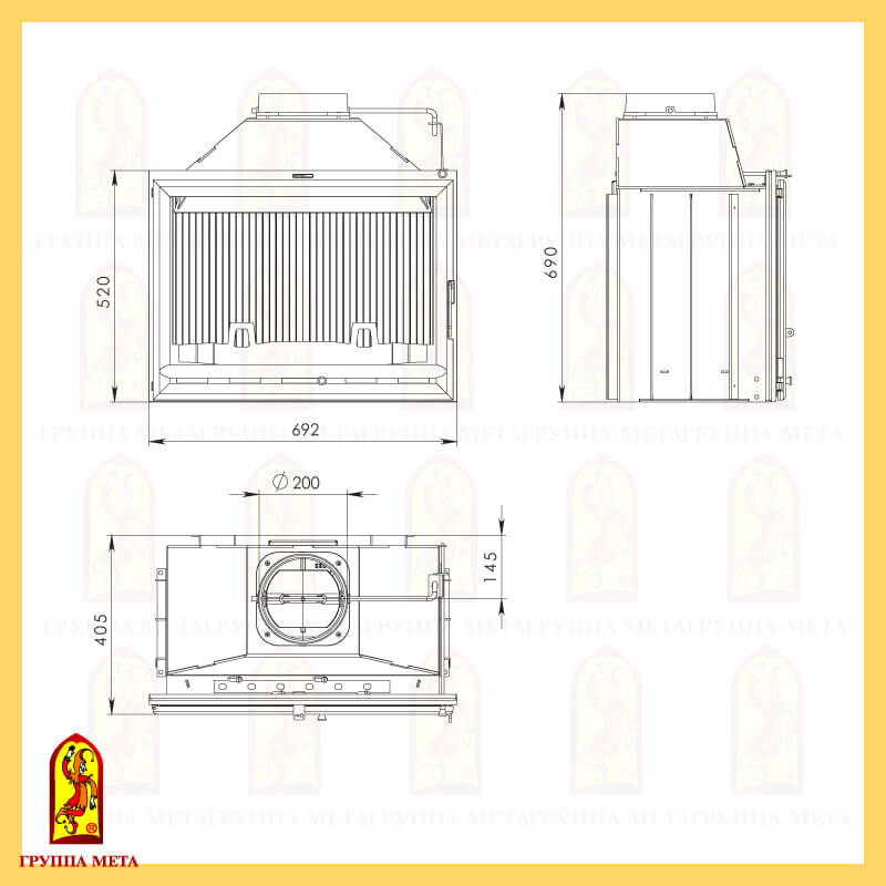 Инструкции, чертежи, документы - Каминная топка Мета Оптима 701 Ш