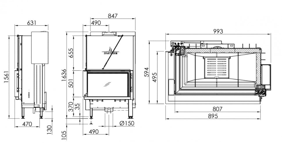 Инструкции, чертежи, документы - Каминная топка Spartherm Premium V-2L/R80h
