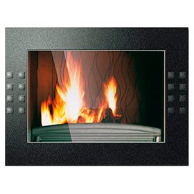 Интересная дизайнерская рамка делает топку стильной, выделяет ее в пространстве помещения.