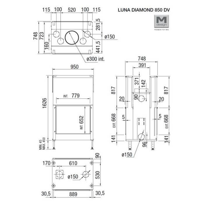 Инструкции, чертежи, документы - Каминная топка M-Design Luna 850 DV Даймонд+ (Луна 850 DV Даймонд+)