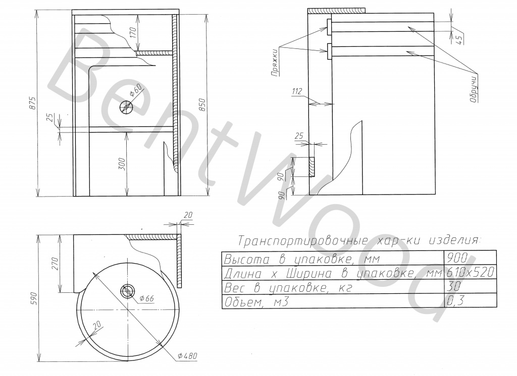Инструкции, чертежи, документы - Умывальник BentWood из лиственницы, стойка прямая